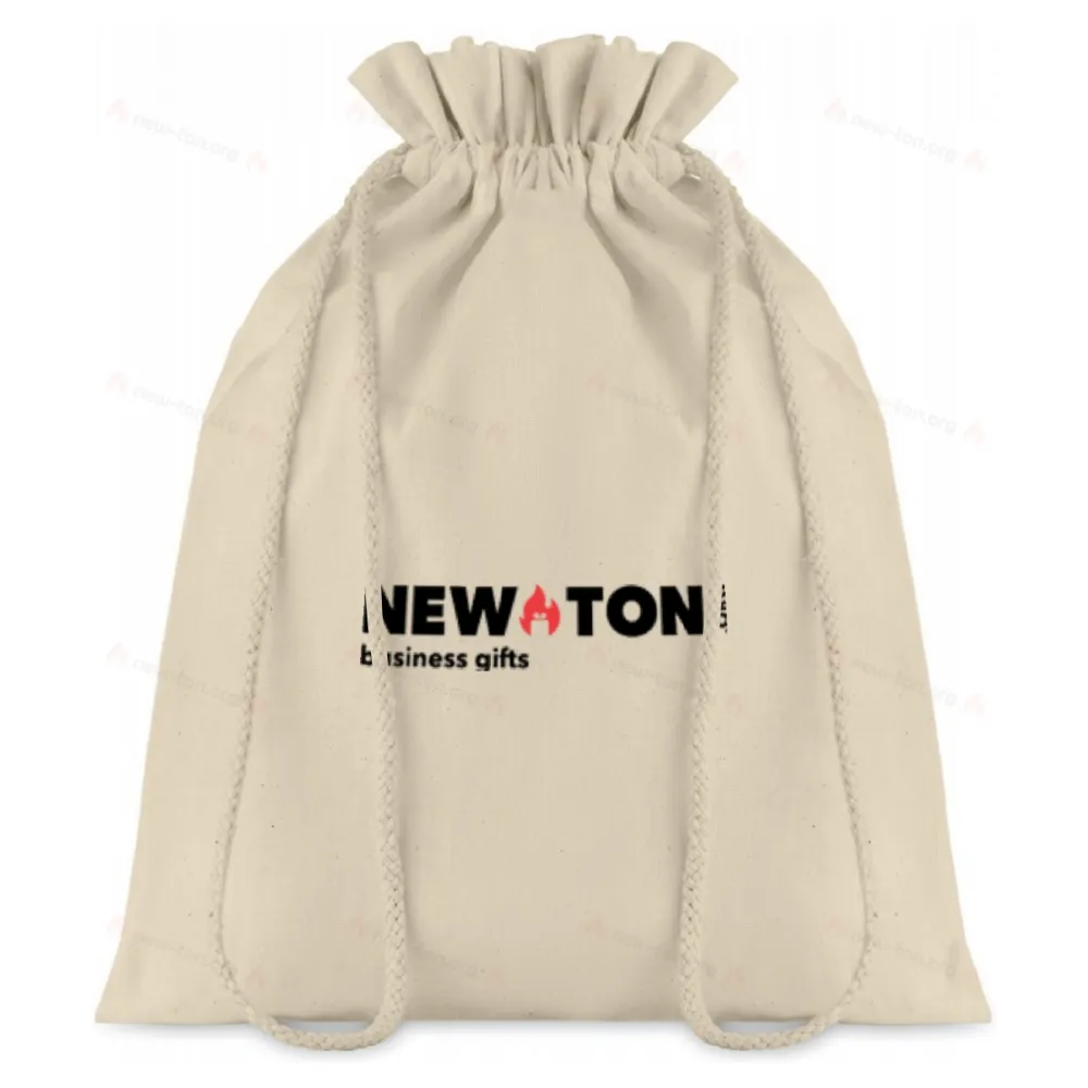 Сумка на шнурках подарочная средняя из хлопка. Примерно 25 х 32 см. Плотность 105 гр/м².