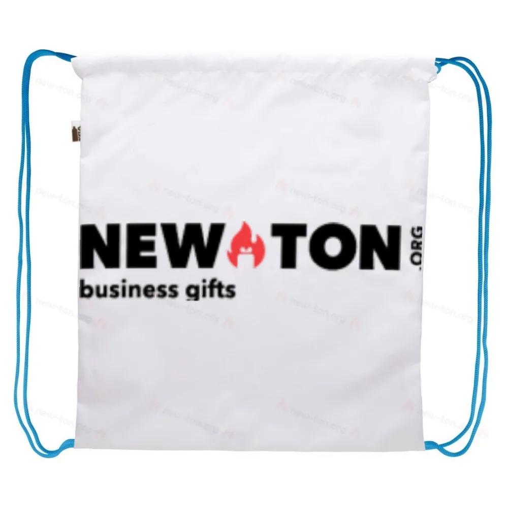 Сделанная на заказ сумка на шнурке с цветными завязками, 190T RPET. С полностью сублимационной печатной графикой. MOQ: 50 шт.