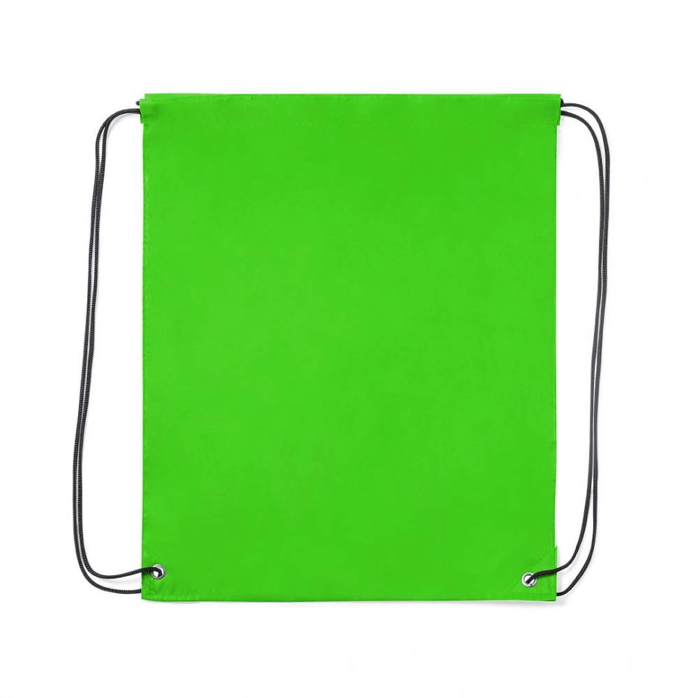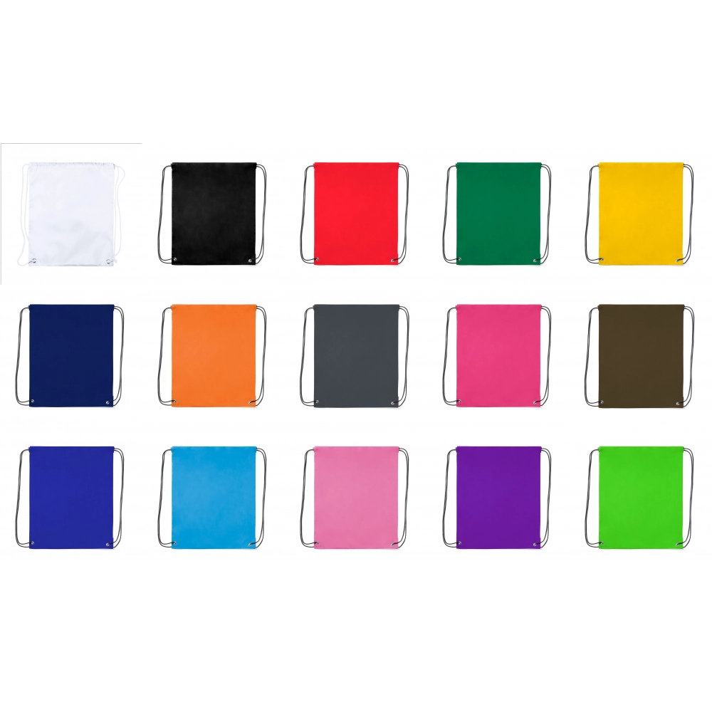 Сумка на шнурках из мягкого полиэстера 210T, доступный в широкой цветовой гамме. Черный цвет, саморегулирующиеся завязки, усиленные уголки в тон ткани и прочные металлические проушины. Белый цвет специально для сублимации. Полиэстер 210T
