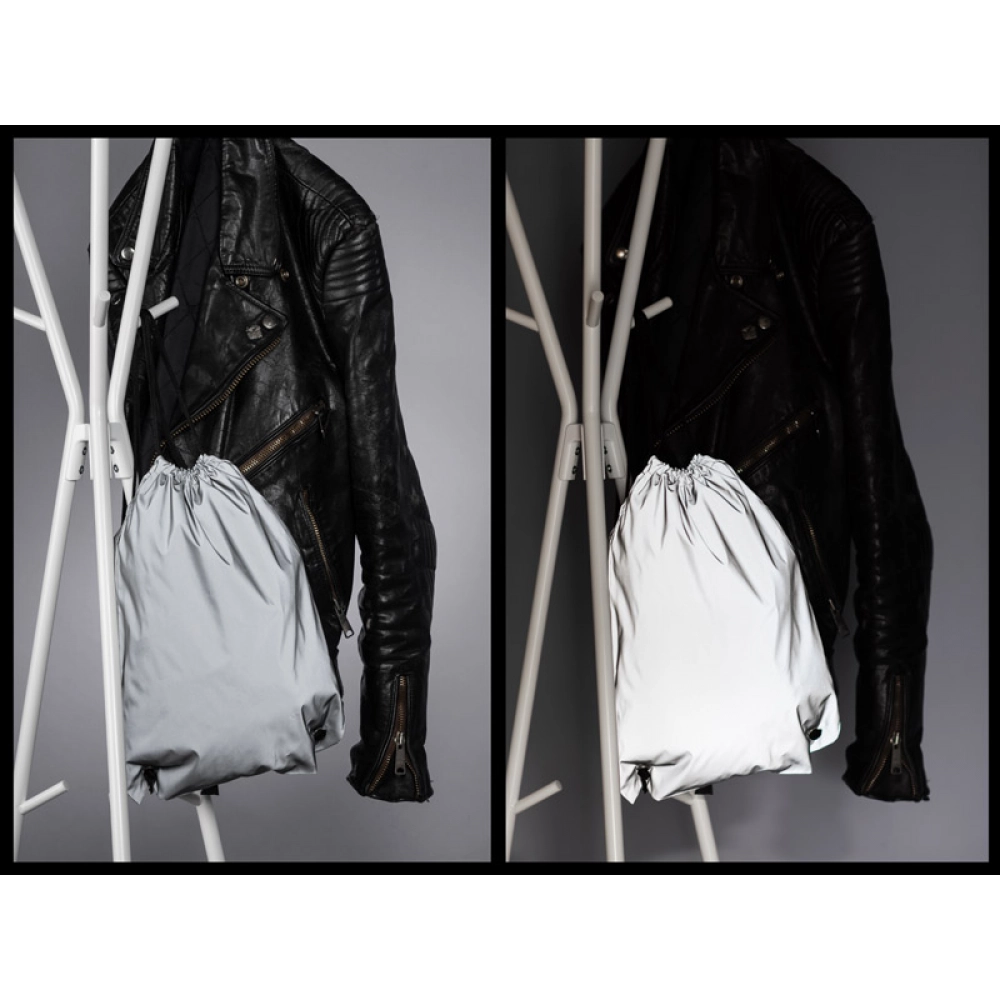 VISI — это сумка на шнурке удобного размера, которая станет полезным аксессуаром для тех, кто отправляется на прогулку или велосипедную поездку в темное время суток. Она изготовлена из светоотражающего материала, что делает вас заметными в свете фар, повышая безопасность пользователя. Сумка имеет одно отделение и застегивается с помощью традиционных шнурков.