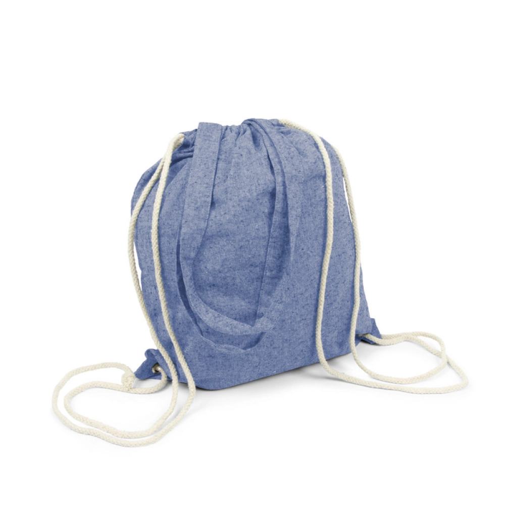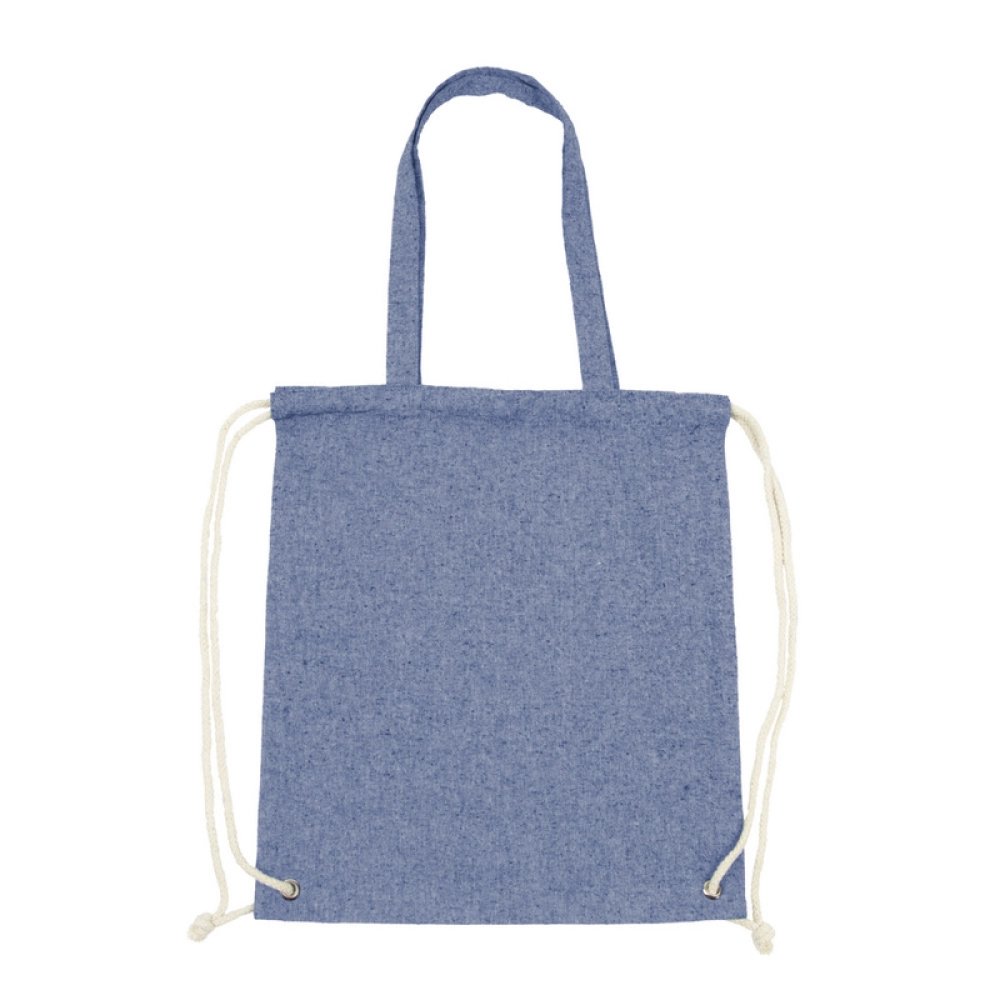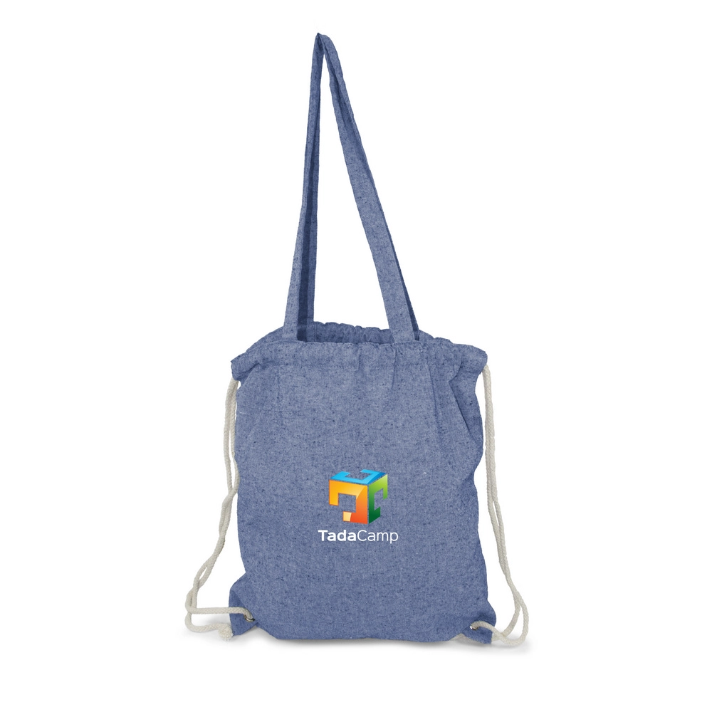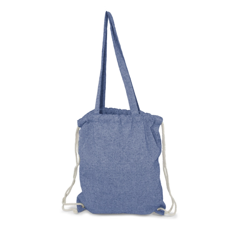 Мешок с завязкой и сумка для покупок 2 в 1, шнур позволяет носить его на спине, а длинные ручки позволяют носить сумку на плече, вмещает небольшие продукты или спортивную одежду для тренировок в зале, изделие из переработанного хлопка 140 г/м2.