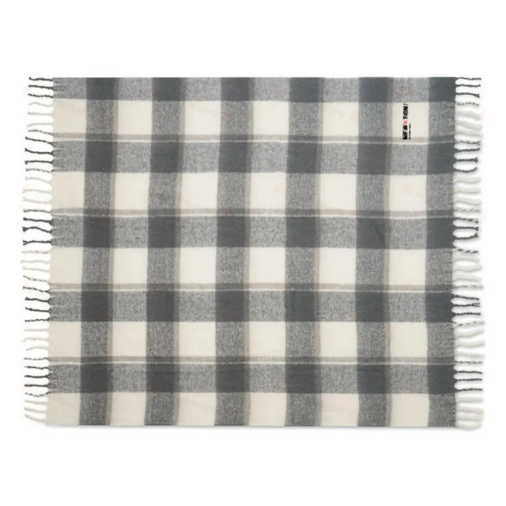 Мохеровый плед с клетчатым узором и кисточками ручной работы. Идет в комплекте с лентой и открыткой.