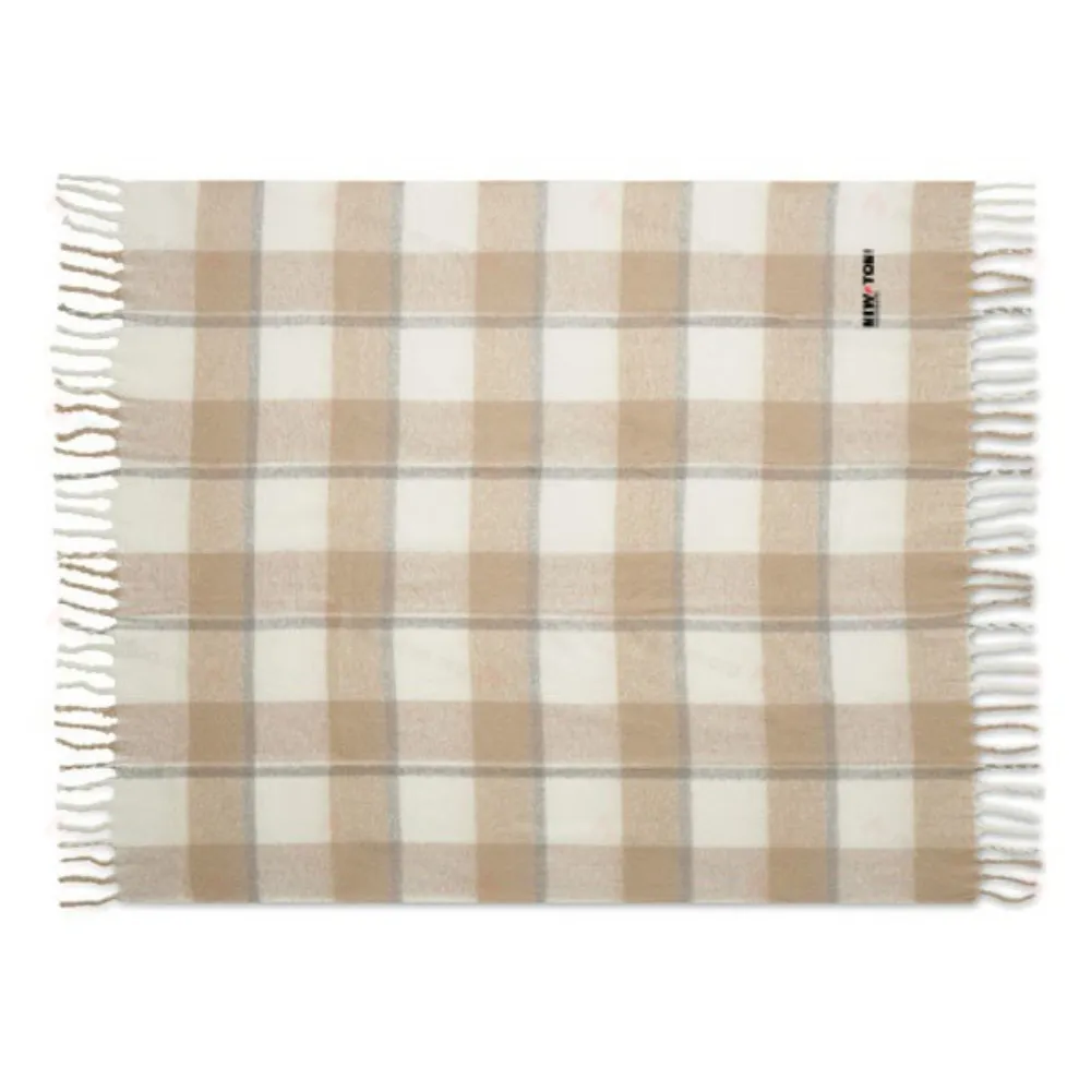 Мохеровый плед с клетчатым узором и кисточками ручной работы. Идет в комплекте с лентой и открыткой.