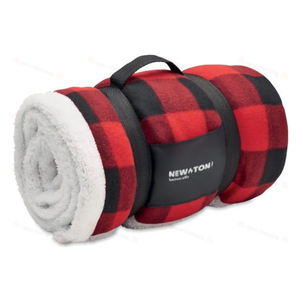 Плед из флиса RPET (180 гр/м²) и шерпы (230 гр/м²). Поставляется с ремешком для переноски из RPET.