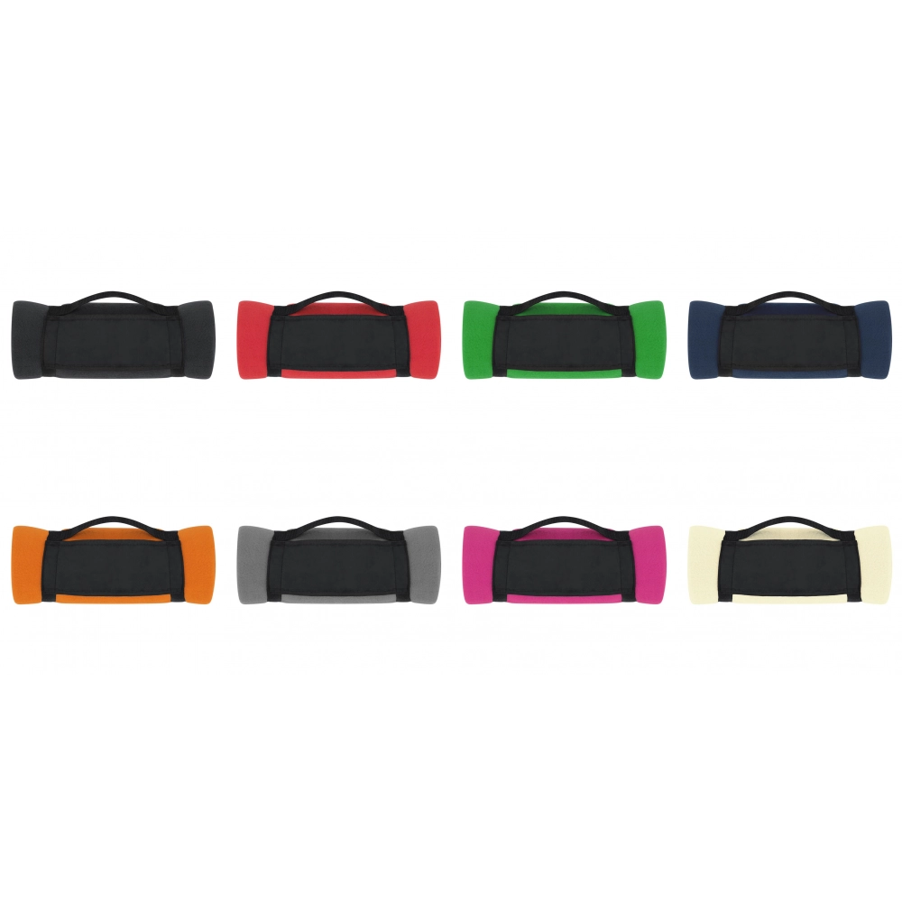 Плед 130х160см из полярного флиса плотностью 200 г/м2 с обработкой против катышков и ручкой для переноски с застежкой-липучкой из мягкого полиэстера.