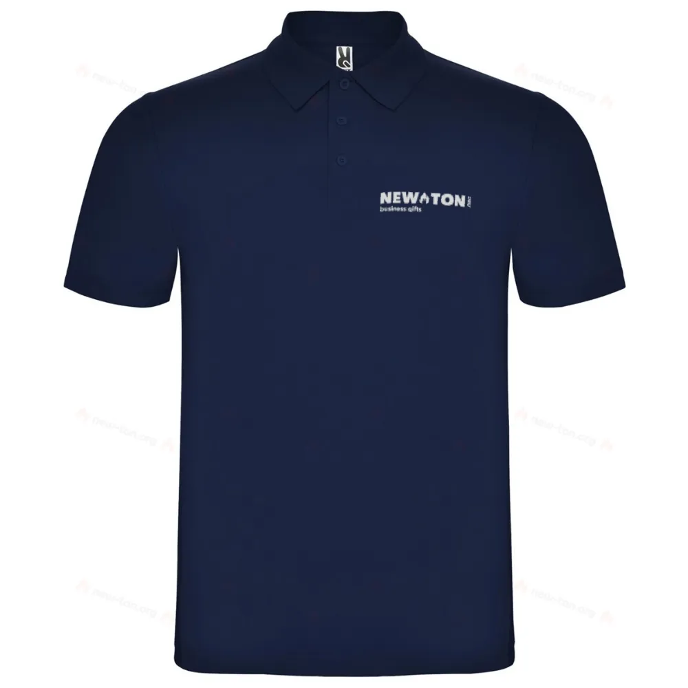 Футболка-поло с короткими рукавами, планкой на 3 пуговицы и воротником из ребристой ткани 1x1. Усиленные закрытые швы на воротнике. Съемная этикетка. Модель ростом 190 см, носит размер L.