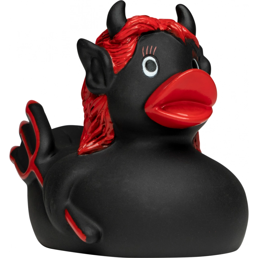 Черная, как ночь, и огненно-красная, она наверняка будет встречена дьяволом в аду с коктейлем... Резиновая уточка-дьявол не только выглядит адски хорошо, но и привлекает внимание. С красивыми, пламенеющими красными волосами и трезубцем под крылом, она вызывает уважение. У нее также есть защита дизайна, и кто знает, может быть, она даже заставит воду в ванне закипеть ;-)