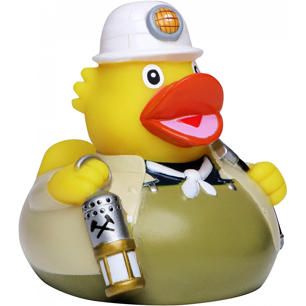 Если в вашей ванной комнате появились минеральные отложения, будьте уверены, что наша утка-шахтер выведет их на свет. Наш друг одет в типичную шахтерскую одежду коричневого цвета с ярким белым платком и защитным шлемом. Чтобы хорошо видеть в темноте, шахтер приносит с собой лампу и может сразу приступить к работе.