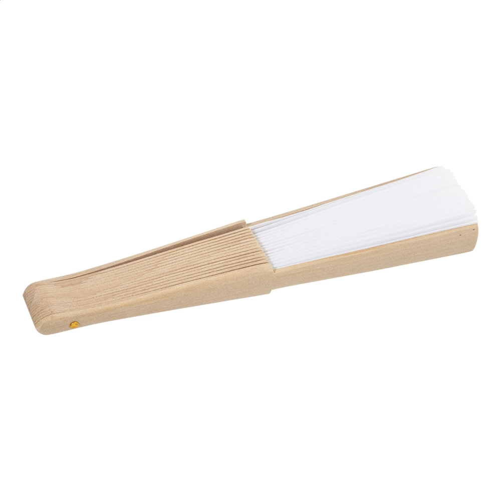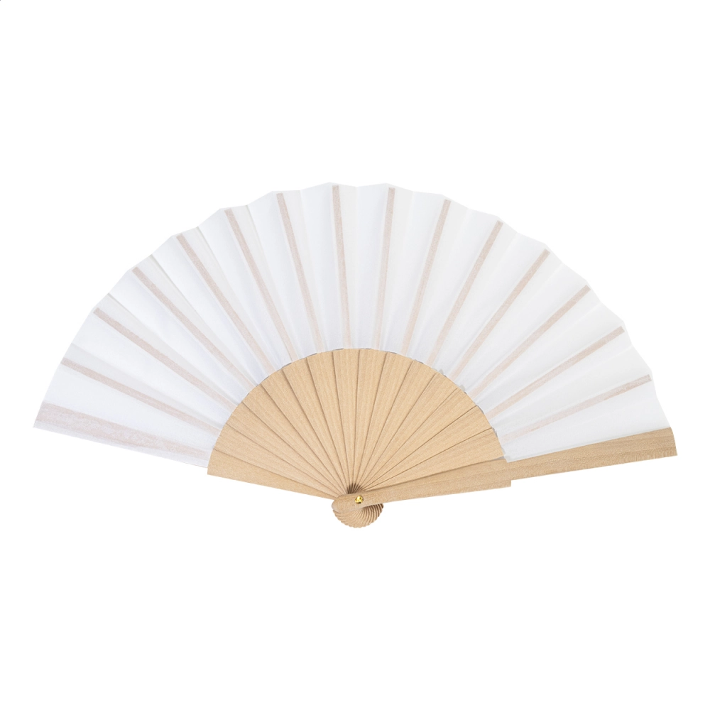 Веер из RPET полиэстера с деревянными ребрами.
