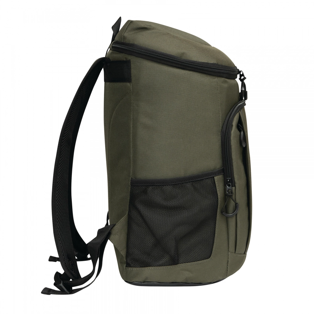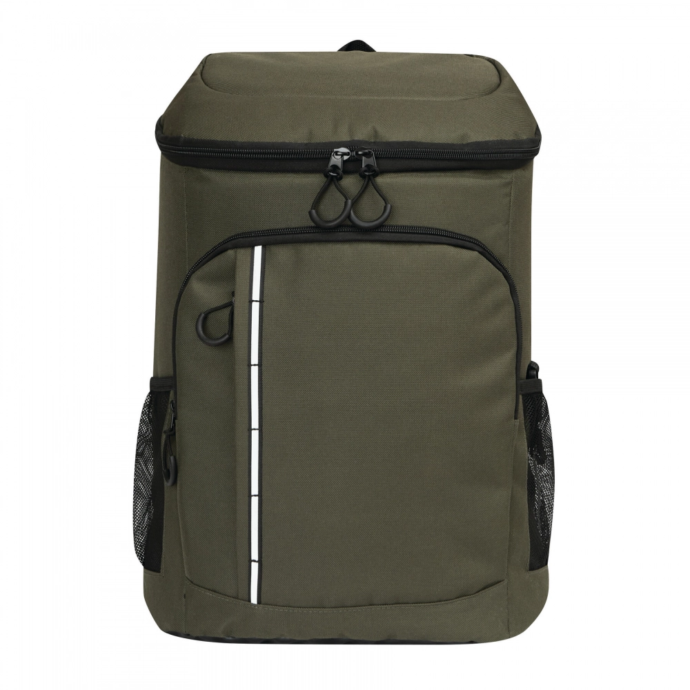 Термосумка-рюкзак YUKON: 1 большой, на молнии, изолированный основной отсек с подкладкой из PEVA, 1 передний карман на молнии с сетчатым отделением, 1 вертикальный передний карман с молнией и светоотражающей полосой, 2 боковых сетчатых кармана, 1 съемная открывашка из нержавеющей стали, водоотталкивающее дно, регулируемые мягкие плечевые ремни, ручка для переноски
