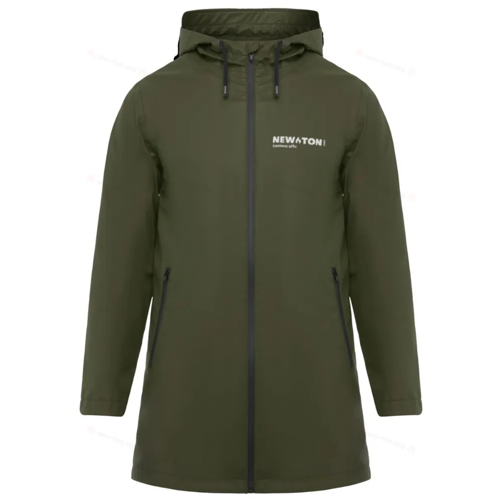 Водонепроницаемый дождевик. Капюшон с козырьком. Герметичные молнии и швы. Контрастные детали черного цвета. Два боковых кармана на молнии. Разрез на заднем подоле. Съемная этикетка. Водонепроницаемый. Модель ростом 185 см, на ней размер M.