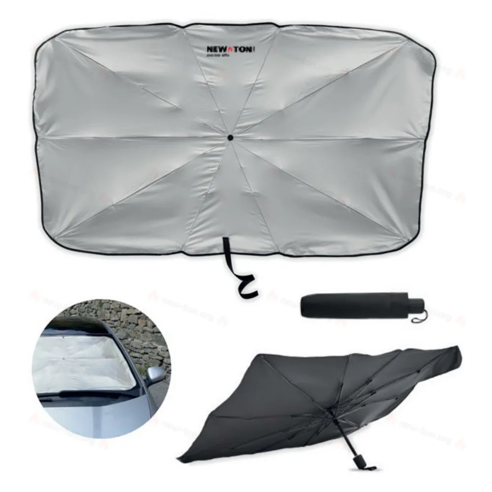 Автомобильная защита-зонт от солнца на лобовое стекло из эпонжа 190T с подкладкой с одной стороны. Ручное открытие/закрытие.