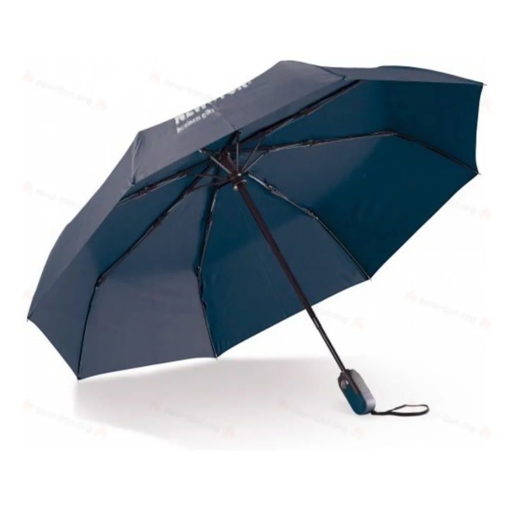 Роскошный складной зонт в деловом стиле. Ручка эргономичной формы оснащена механизмом автоматического открывания и закрывания зонта. Каркас частично сделан из стекловолокна, что придает зонту дополнительную прочность. Поставляется с рукавом.
