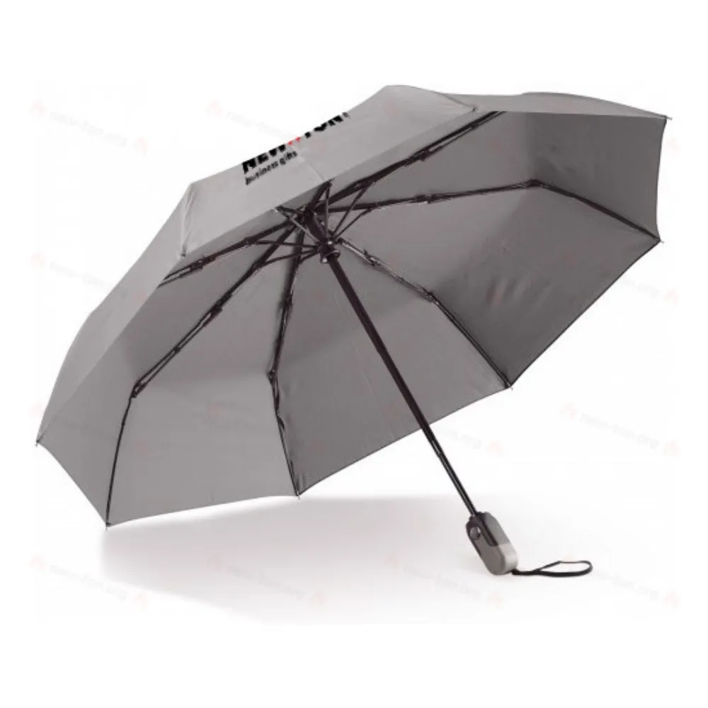 Роскошный складной зонт в деловом стиле. Ручка эргономичной формы оснащена механизмом автоматического открывания и закрывания зонта. Каркас частично сделан из стекловолокна, что придает зонту дополнительную прочность. Поставляется с рукавом.