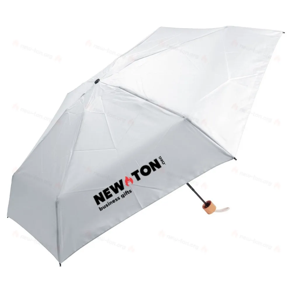 Ручной, ветрозащитный трехслойный мини-зонт с 6 панелями в сумке соответствующего цвета. С металлической рамой, стекловолоконными ребрами, бамбуковой ручкой и хлопковым ремешком для руки. 190T RPET понж, с характерной этикеткой RPET.