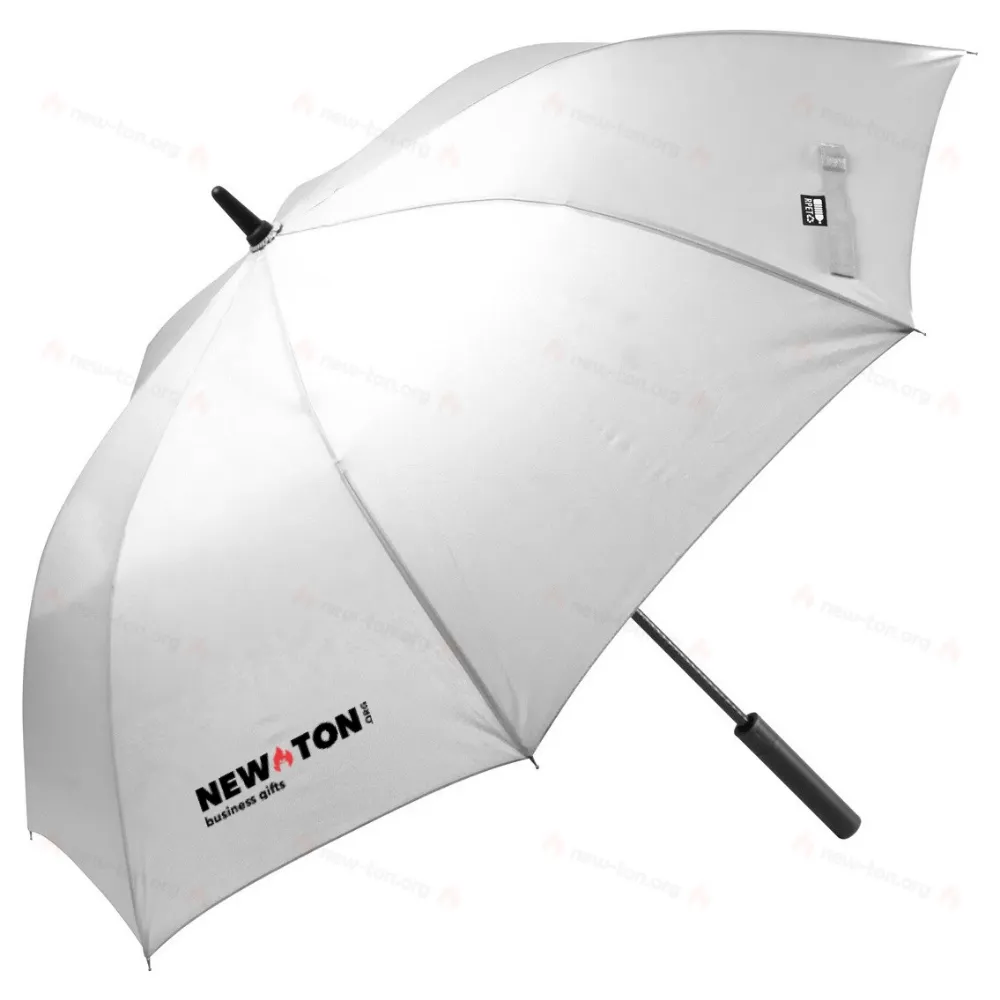 Зонт большого размера с автоматическим механизмом против ветра, 8 панелями, полностью из стекловолокна, ручкой из ABS. Ткань 190T RPET понж. С отличительной этикеткой RPET.