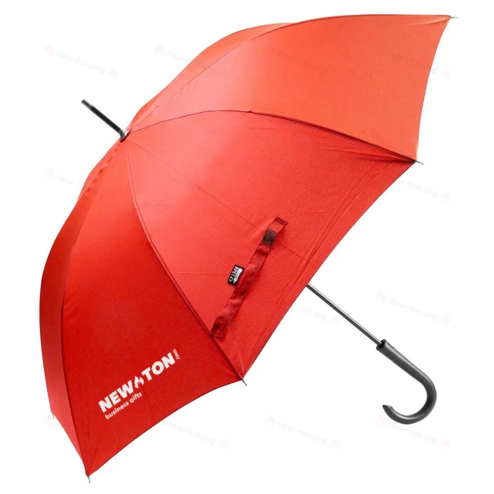 Автоматический ветрозащитный зонт с 8 панелями, стекловолоконной рамой, металлическим валом и изогнутой ручкой из ABS. 190T RPET понж. С характерным ярлыком RPET.