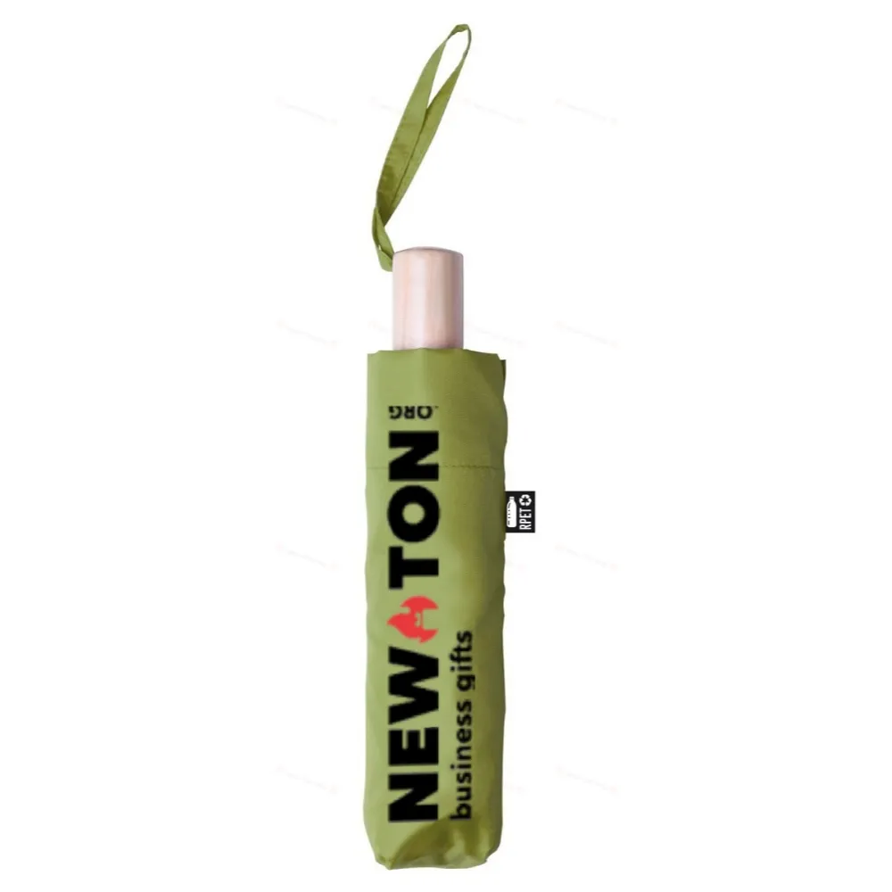 Ручной ветрозащитный складной зонт с 8 панелями в чехле соответствующего цвета. С металлическим каркасом, ребрами жесткости из стекловолокна и деревянной ручкой. 190T RPET pongee. С отличительной этикеткой RPET.