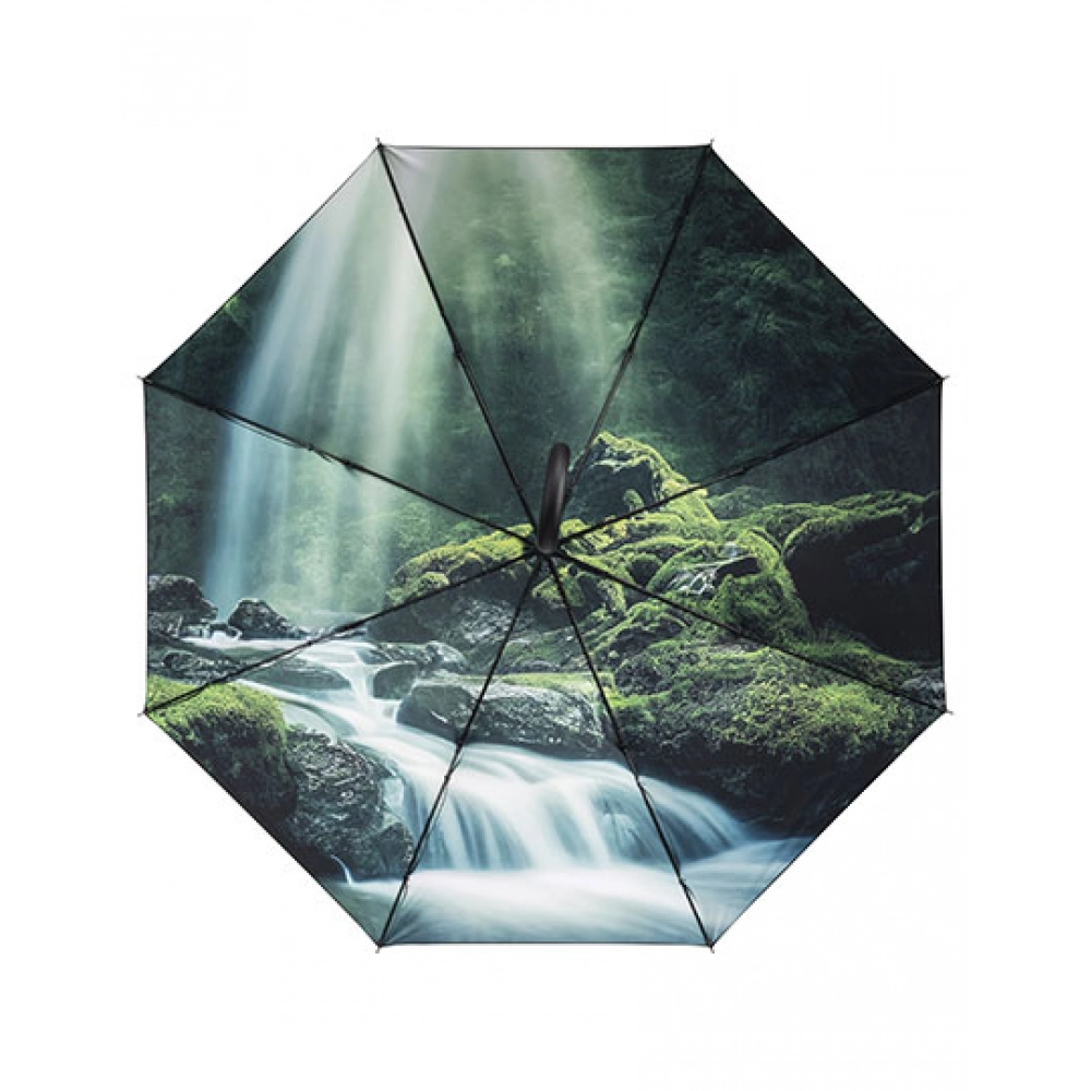 Купол: 100% полиэстер-понже | Рукоятка: пластик | Стержень: сталь | Автоматическая функция | Высококачественная ветрозащитная система для максимальной гибкости каркаса при сильных порывах ветра | Гибкие стеклопластиковые спицы | Купол с внешним покрытием и внутренней печатью | Рукоятка-крюк с мягким покрытием, встроенной кнопкой и возможностью нанесения рекламной надписи | Повышенная защита от коррозии благодаря черному гальваническому покрытию стального стержня.