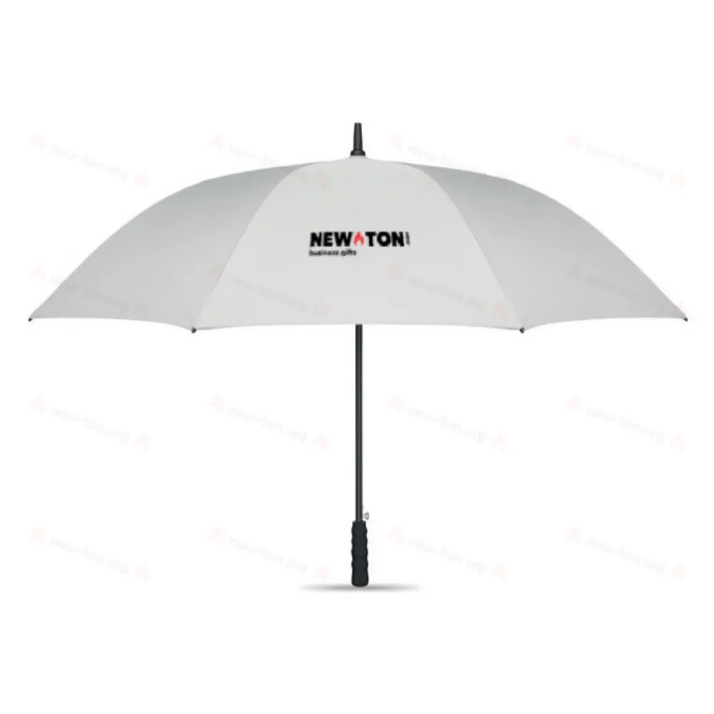 27-дюймовый автоматический зонт, устойчивый к ветру, из ткани понже 190T RPET. Каркас и спицы из стекловолокна. Ручка из соломы и переработанного ABS-пластика. Пластиковые наконечники и верхушка.