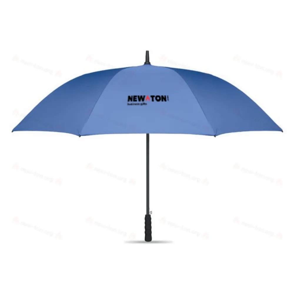 27-дюймовый автоматический зонт, устойчивый к ветру, из ткани понже 190T RPET. Каркас и спицы из стекловолокна. Ручка из соломы и переработанного ABS-пластика. Пластиковые наконечники и верхушка.